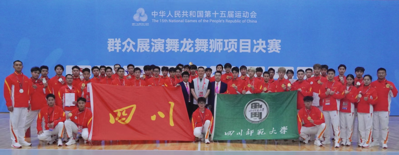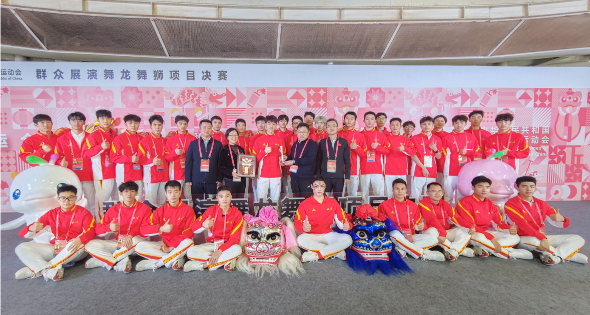 11月11日--14日,在广东佛山举行的中华人民共和国第十五届全运会群众展演舞龙舞狮项目决赛中,我校龙狮队代表四川省首次参赛,分别斩获舞龙障碍项目金牌、北狮自选项目金牌、舞龙自选项目银牌和舞龙规定项目铜牌,以耀人的成绩闪耀全运会舞台。