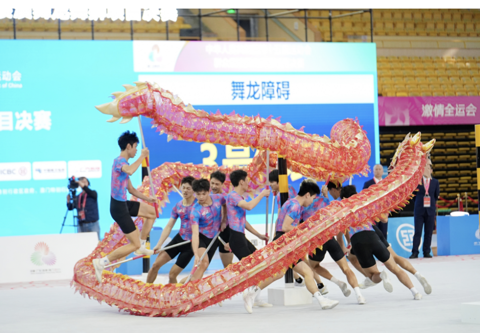 本届全运会赛场群雄逐鹿,强手云集。在竞争尤为激烈的舞龙障碍项目中,川师龙狮队的队员们化身一条蓄势腾飞的“蛟龙”,手持龙具毅然投身赛道。面对高低错落、蜿蜒迂回的重重障碍,他们凭借日复一日锤炼的默契与功底,极速穿行间腾挪翻转、盘旋游走,动作如行云流水、一气呵成。鼓点铿锵处,蛟龙破阵而出;协作无间时,险关应声而破,最终以雷霆之势率先撞线,最终以1:03的优异成绩稳稳夺下金牌,创造了全国纪录,为征程打响完美第一枪!