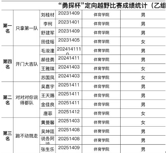 为丰富同学们的课余生活,提升体育锻炼能力,增强团队凝聚力,2025年11月16日早上8:45,由四川师范大学体育学院分团委、学生会主办的“勇探杯”校园定向越野比赛在第一运动场如期举行。活动当天,30支队伍,120名远动员,如约而至。这是一场智慧与体力交织的挑战,更是一次探索校园、超越自我的过程。