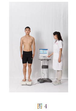 测试时,自然站立在体重计中央,保持身体平稳(图4)。