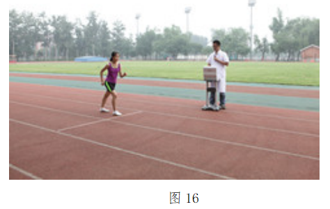 测试时,采用站立式起跑;当听到起跑信号后,受试者立即起跑,全力跑向终点线(图16)。