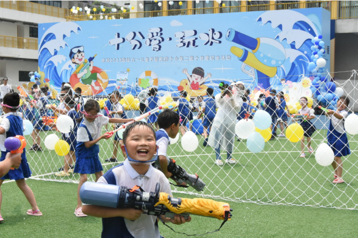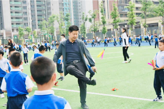 在杨智校友的推动下,天府十小形成了独具特色的体育教育体系:“体育早读”开启活力清晨,一小时阳光大课间让运动全覆盖,“每周一次书包不回家”让亲子运动成为家庭新风尚。创新的评价机制更让“人人上场、人人闪亮”成为现实——校园三大球比赛成绩由40%对抗赛+60%人人赛构成,确保每个孩子都能在运动中找到价值。如今,该校已实现学生体质健康稳居全区前茅,啦啦操、跳绳等项目屡获国家级奖项,“小胖墩”“小眼镜”比例持续下降,操场上随处可见学生向校长“下战书”挑战的鲜活场景。