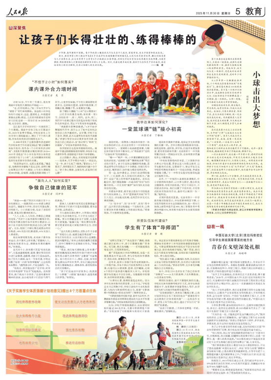 近日,从第六届蔡崇信“以体树人”校长年度盛典传来喜讯,我校体育学院2007届校友、四川天府新区第十小学校党支部书记、校长杨智成功当选2025全国“以体树人”校长,成为四川省获此殊荣的第5位校长。随后,11月30日《人民日报》以《“面向人人”如何实现?争做自己健康的冠军》为题,专题报道了天府十小在杨智校长引领下的体育教育创新实践,高度肯定其“面向人人”的以体树人理念。