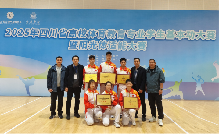 近日,2025年四川省高校体育教育专业学生基本功大赛在宜宾学院圆满落幕。我校体育学院代表队与来自全省26所高校的156名精英学子同台竞技,凭借卓越的综合实力载誉归来,一举斩获2项团体一等奖和多项个人一等奖,在省级最高水平的舞台上,再次彰显了我校体育教育的雄厚实力与育人成果。