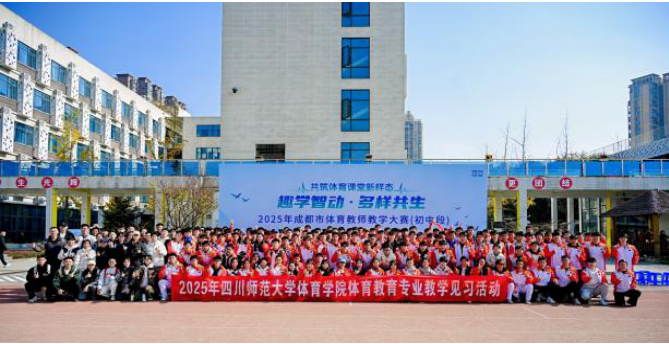 教师是立教之本、兴教之源,强国必先强教,强教必先强师。为全面提高中小学体育教师职前培养质量,为建设一支高素质专业化的体育教师队伍储备人才,构建区域化的大中小学一体化体育教育体系,2025年11月27日,四川师范大学体育学院研究生与2023级体育教育专业本科生200余人共赴向阳桥中学,观摩由成都市教育局主办的“成都市体育教师教学大赛(初中段)”决赛。本次大赛以“趣学智动·多样共生,共筑体育课堂新样态”为主题。