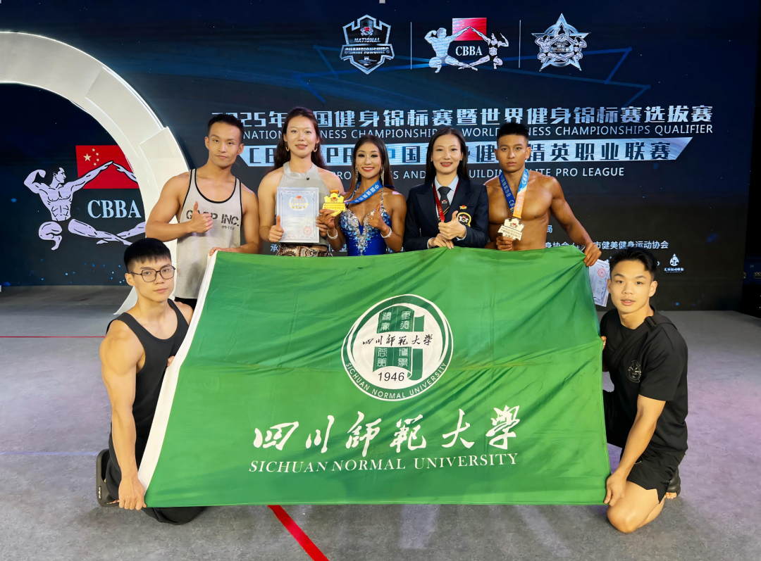 我校健身健美代表队在体育学院副院长李佩聪的带领下,经张德春、李小刚、李楠、石玉岩四位教师的悉心指导,全体队员历经一个暑假的艰苦集训,最终在赛事中斩获佳绩:谢曾蕊荣获女子健身体模A组冠军;张川东获男子健身先生A组亚军、全场总决赛第四名;王嘉珩、汪琦凯分别获得比基尼小姐F组第四名、男子体模A组第十名。