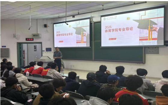 2025年10月23日中午12:30,四川师范大学体育学院2025级新生专业导论讲座在 C104教室顺利举行。体育学院副院长杨成伟教授担任主讲,围绕体育教育、社会体育指导与管理两大专业展开导论,从发展历程、课程建设、培养学生更高目标等维度,为同学们提供指引。