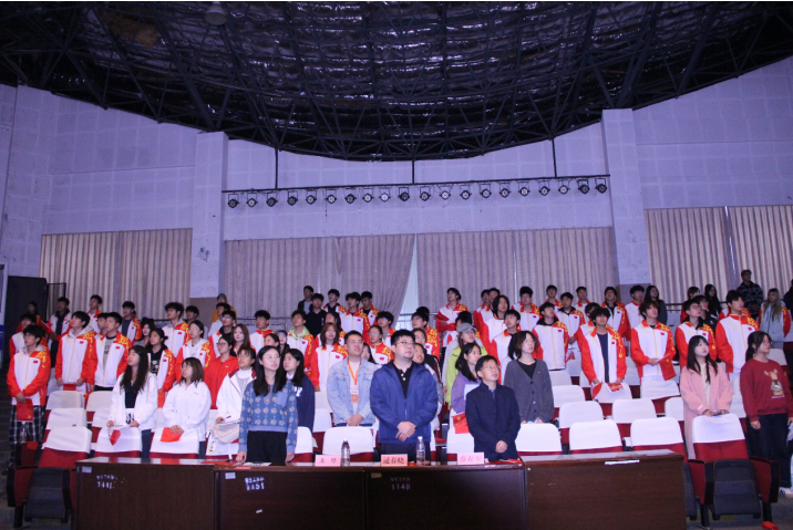 活动在庄严的团歌与校歌中拉开帷幕。随后,同学们通过彩带龙表演《燃动青春》、小品《前滚翻加后滚翻》、朗诵《不朽》、舞狮《狮舞华章》及大合唱《我和我的祖国》等节目,展现了新时代青年传承精神、勇担使命的坚定信念。