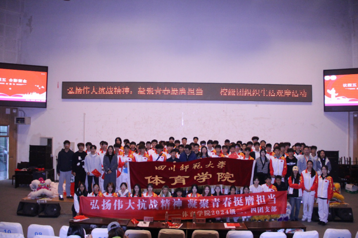 为深入学习贯彻习近平总书记在纪念中国人民抗日战争暨世界反法西斯战争胜利80周年大会上的重要讲话精神。2025年10月22日下午,四川师范大学体育学院2024级二、四团支部在成龙校区学生活动中心举办“弘扬伟大抗战精神 凝聚青春挺膺担当”校级团组织生活观摩活动。四川师范大学国家大学生文化素质教育基地办公室负责人逯春晓、体育学院学工办主任兼分团委书记蔡存军、2024级辅导员朱烨及全体团支部学生共同参与。