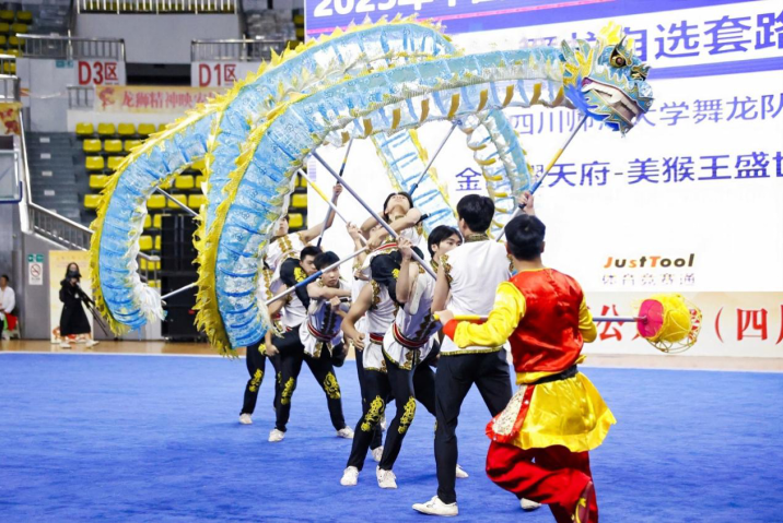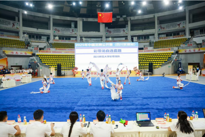 近日,2025 年中国龙狮公开赛(四川安居站)在遂宁市安居区圆满落幕。作为全国龙狮运动领域的重要赛事,本次比赛吸引了吉林、上海、福建、湖北、广东、广西、河南、云南、重庆、四川10个省(区/市)16支顶尖队伍近200名运动员同台竞技,赛事规格与竞技水平均处于国内前列。我校龙狮队队凭借深厚的文化积淀、精湛的技艺表现与稳定的心理素质,在激烈角逐中脱颖而出,一举斩获“2金1铜”的优异成绩,不仅将川师龙狮的风采展现给全国观众,更以国赛佳绩印证了我校传统体育课程教学的扎实成果,为中华优秀传统文化的当代传承注入青春力量。